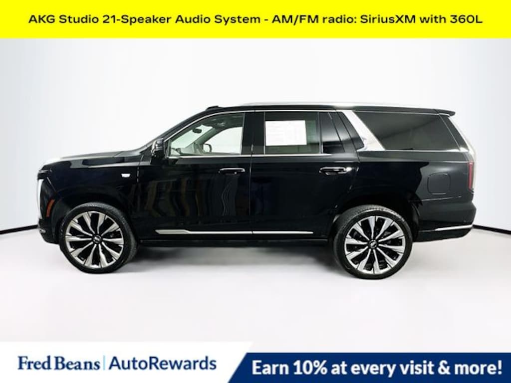 Step inside and be captivated by the Escalade's unparalleled luxury. The AKG Studio 21-Speaker Audio System delivers a concert-hall experience, while the Reconfigurable Full-Color Head-Up Display keeps vital information within your line of sight. Enjoy the convenience of Wireless Apple CarPlay and Wireless Android Auto, as well as the peace of mind provided by the Blind Zone Steering Assist with Trailering and the Integrated Trailer Brake Controller.