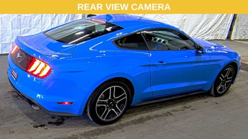The bold blue exterior of this Mustang EcoBoost Premium commands attention, while the well-appointed interior pampers you with premium features. Enjoy the convenience of SYNC 3 communications and entertainment, the comfort of leather-wrapped steering and shift knob, and the peace of mind that comes with advanced safety technologies like the Rear Parking Sensors and Auto High-beam Headlights.
