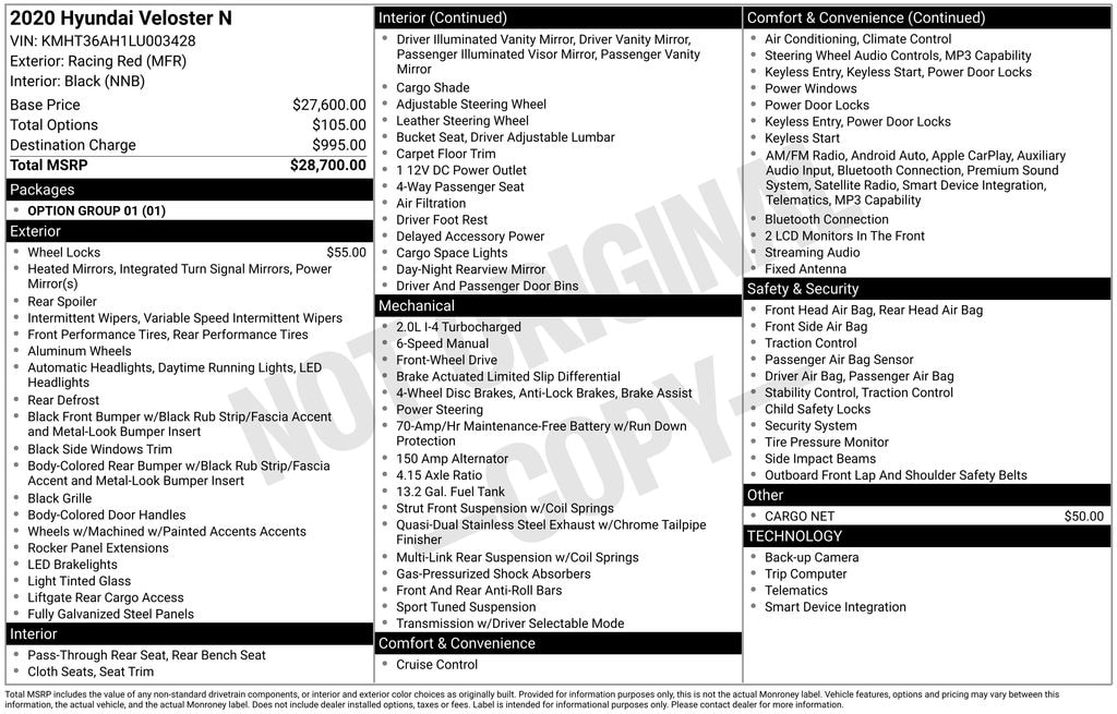 This Veloster N is also backed by Triton Certified Classic Vehicle coverage, giving you added peace of mind and confidence in your purchase. With its uncompromising performance, premium features, and trusted certification, the 2020 Hyundai Veloster N is the ultimate driver's car.