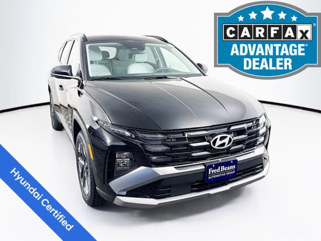 2025 Hyundai Tucson SEL 2.5L I4 DGI DOHC 16V LEV3-SULEV30 187hp 8-Speed Automatic with SHIFTRONIC AWD 4D Sport Utility Phantom Black Factory Certified Vehicle, 5 Day Return / 30 Day Exchange, Auto Reward Program, AWD, AM/FM radio: SiriusXM, Apple CarPlay & Android Auto, Auto High-beam Headlights, Automatic temperature control, Front dual zone A/C, Fully automatic headlights, Heated door mirrors, Heated Front Bucket Seats, Heated front seats, Power door mirrors, Power driver seat, Power Liftgate, Radio: AM/FM/HD Audio System, Remote keyless entry, Steering wheel mounted audio controls.