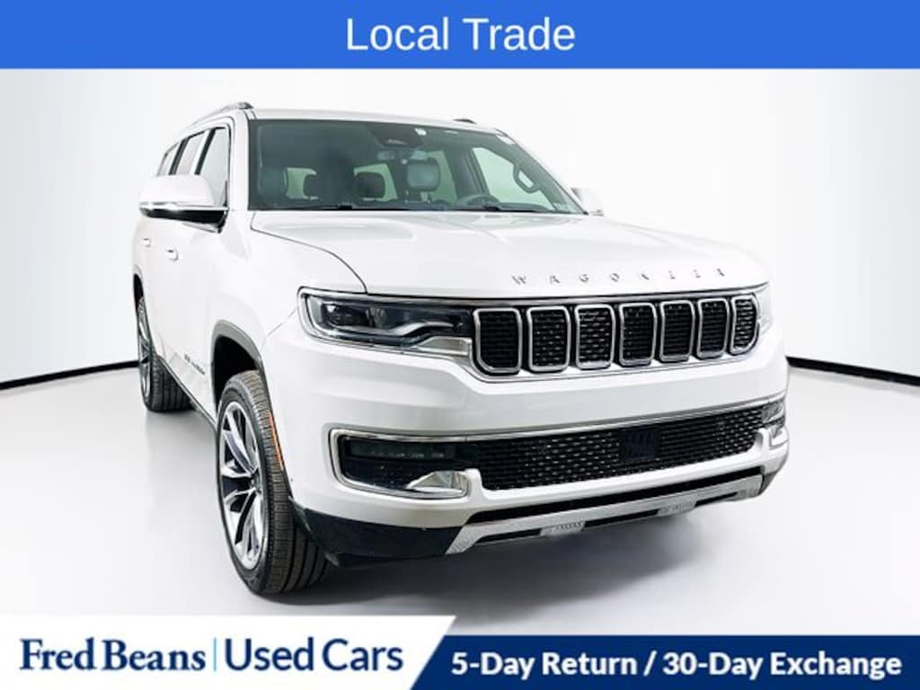 Recent Arrival! 2022 Jeep Wagoneer Series III 5.7L V8 8-Speed Automatic 4WD 4D Sport Utility Luxury White Pearlcoat Local Trade, Great Service History, 19 Speaker McIntosh Audio System, 3 Panel Sunroof, 7-Passenger Seating, Adjustable Roof Rail Crossbars, Cargo Cover, Flexible Seating Group, Floor Console w/Cupholder, Heated front seats, Heated rear seats, Luxury Front & Rear Floor Mats, Navigation System, Power Deployable Running Boards, Power Liftgate, Power Tip/Slide Recline 2nd Row Buckets, Premium Group I (DISC), Quick Order Package 22N, Reversible Carpet/Vinyl Cargo Mat, Ventilated front seats.