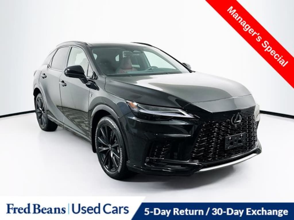 Stunning and turning heads in Caviar, this 2024 Lexus RX 500h F SPORT Performance delivers cutting-edge hybrid performance wrapped in unmistakable Lexus luxury. With a CARFAX one-owner history, a clean CARFAX, and mileage below market average, this RX is backed by the remainder of the factory warranty along with our 5-day return and 30-day exchange for added confidence.